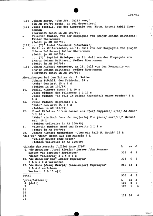 Mannschaftsrodel der Kompanie von Beat Jakob II. Zurlauben im Regiment Pfyffer, verwaltet von Hans Kaspar Schreiber, Fähnrich