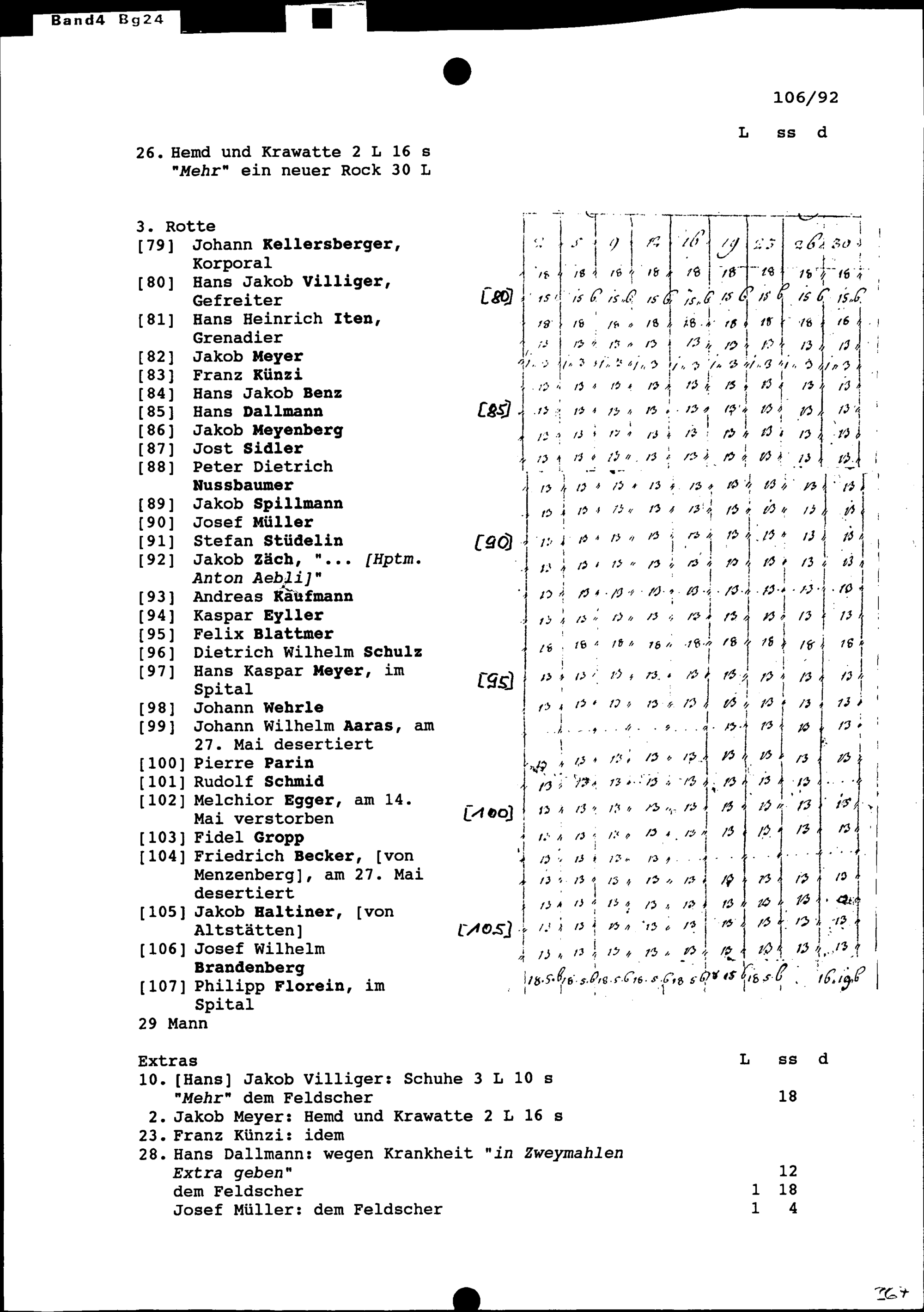 Mannschaftsrodel der Kompanie von Beat Jakob II. Zurlauben im Regiment Pfyffer