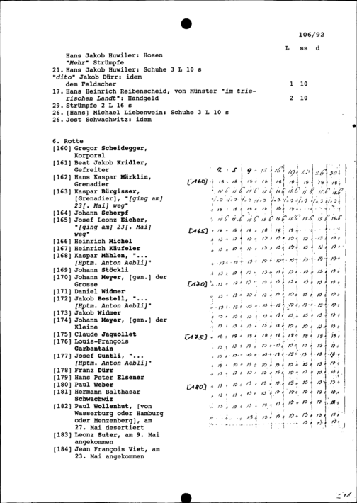 Mannschaftsrodel der Kompanie von Beat Jakob II. Zurlauben im Regiment Pfyffer