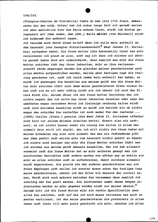 Schreiben von Beat Franz Plazidus Zurlauben, Gardehauptmann, an Maria Barbara Zurlauben