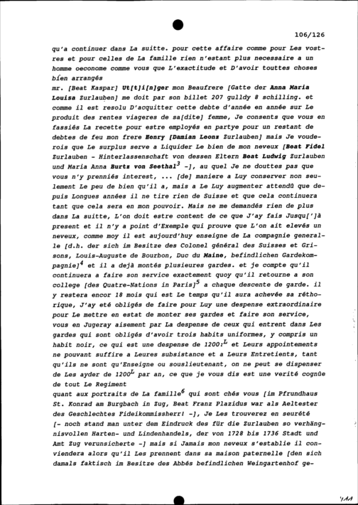 Schreiben von Beat Franz Plazidus Zurlauben, Gardehauptmann und Brigadier, an Beat Jakob Anton Zurlauben, Priester, bei Jacques Louis Göldlin Gastwirt im Weissen Rössli, Luzern