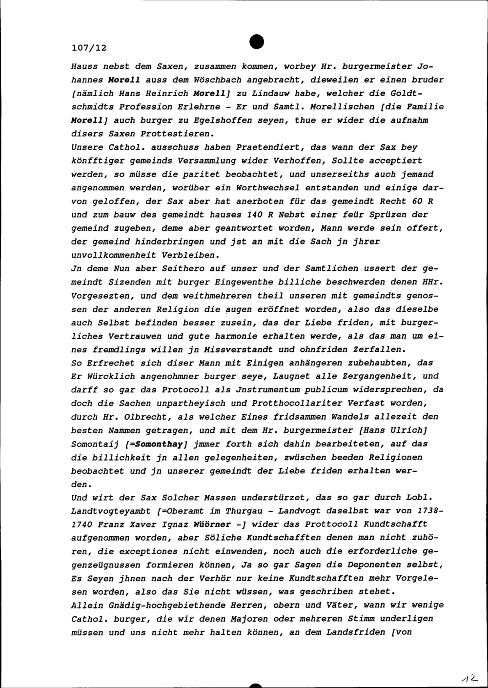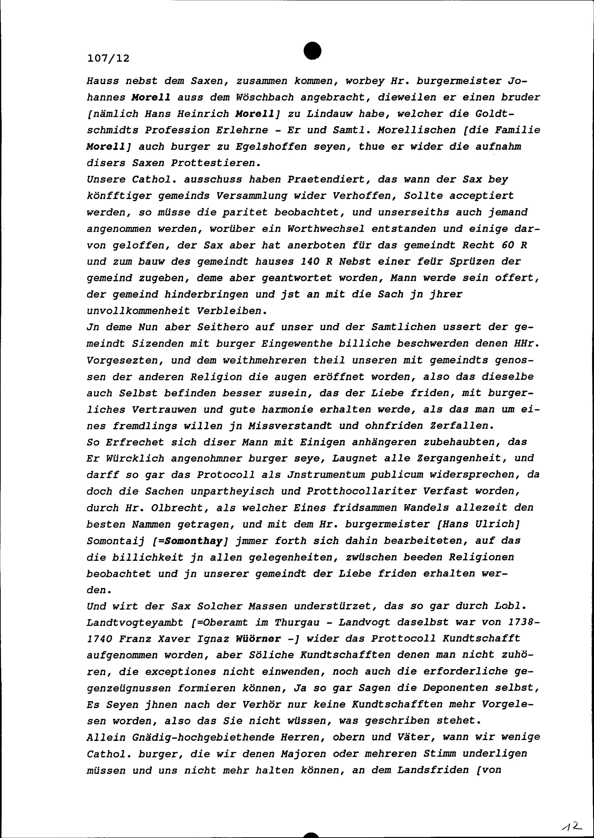 Schreiben der Gemeinde Egelshofen an die im Thurgau regierenden Fünf Katholischen Orte