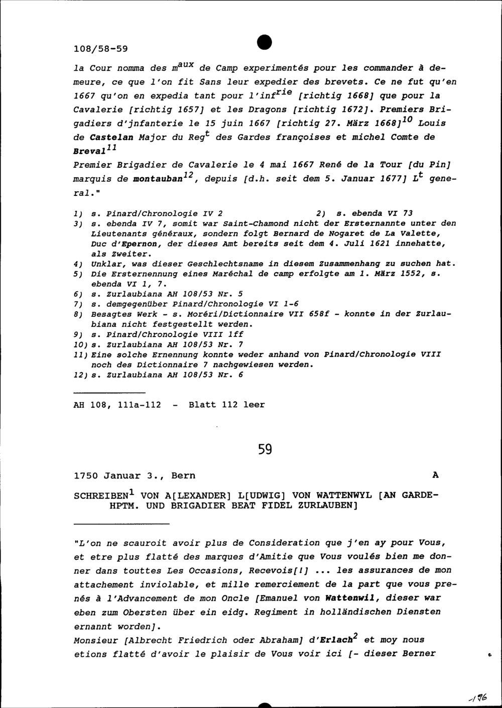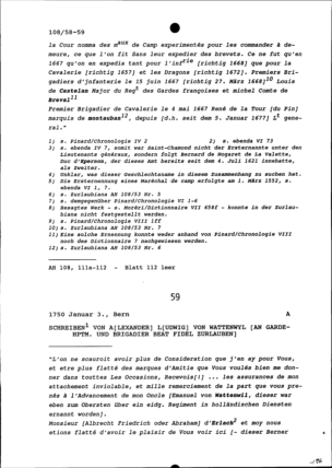 Schreiben von Alexander Ludwig von Wattenwyl an Beat Fidel Zurlauben, Gardehauptmann und Brigadier