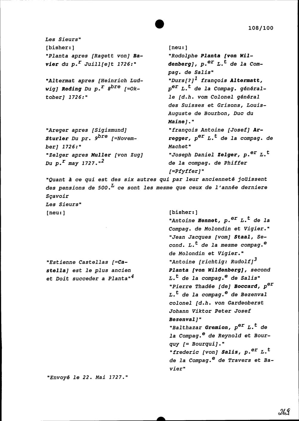 Notiz bezüglich der 10 Pensionen an die rangältesten Offiziere im eidgenössischen Garderegiment