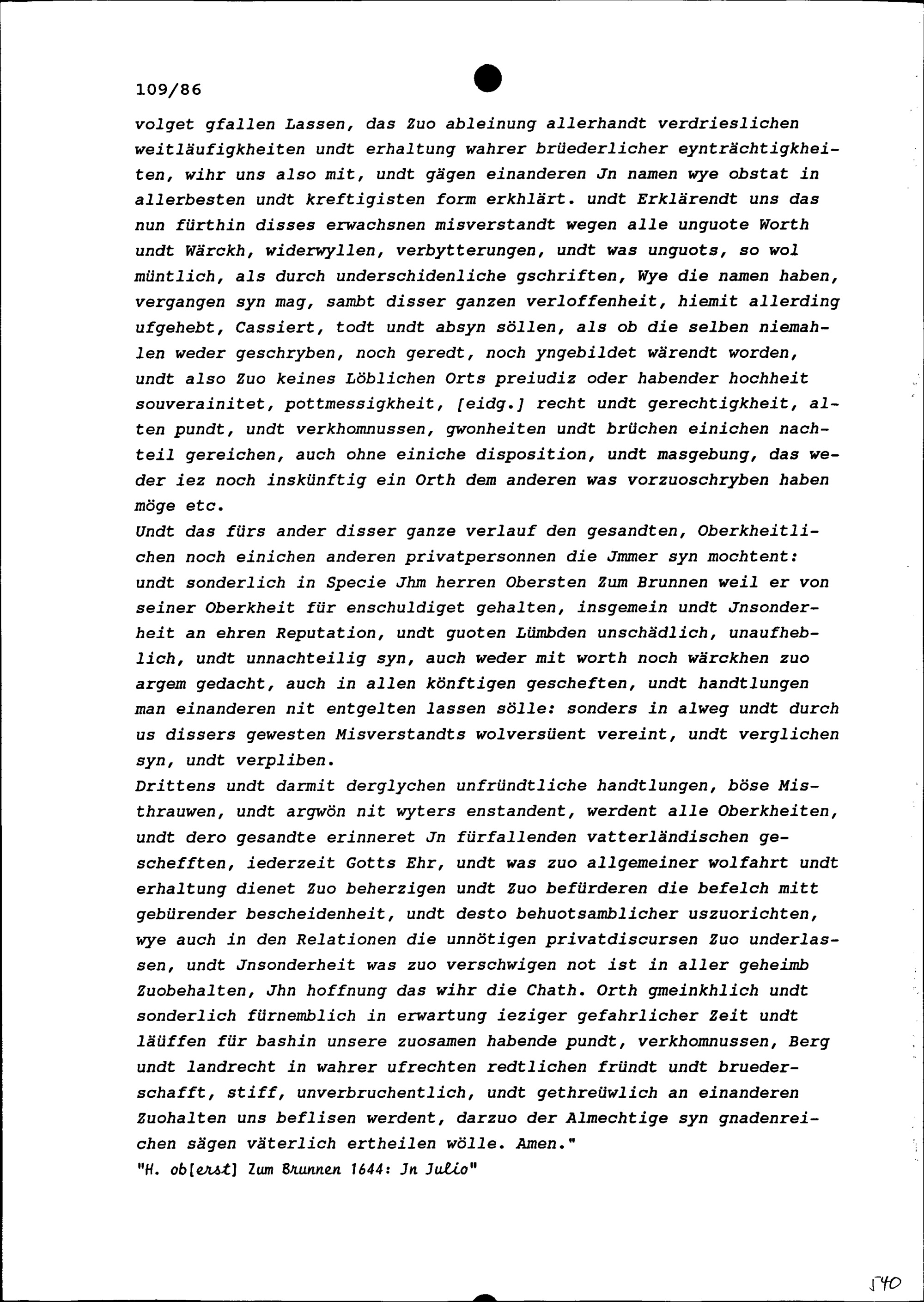 Schiedsspruch der Schiedsorte Freiburg, Solothurn, Katholisch Glarus und Appenzell-Innerrhoden sowie Abtei Sankt Gallen in Bremgarten zur Beilegung des Zumbrunnenhandels mit Uri