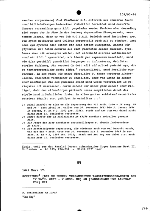 Schreiben der Tagsatzungsgesandten in Luzern der Vier Katholischen Orte an Landammann und Landrat Uri