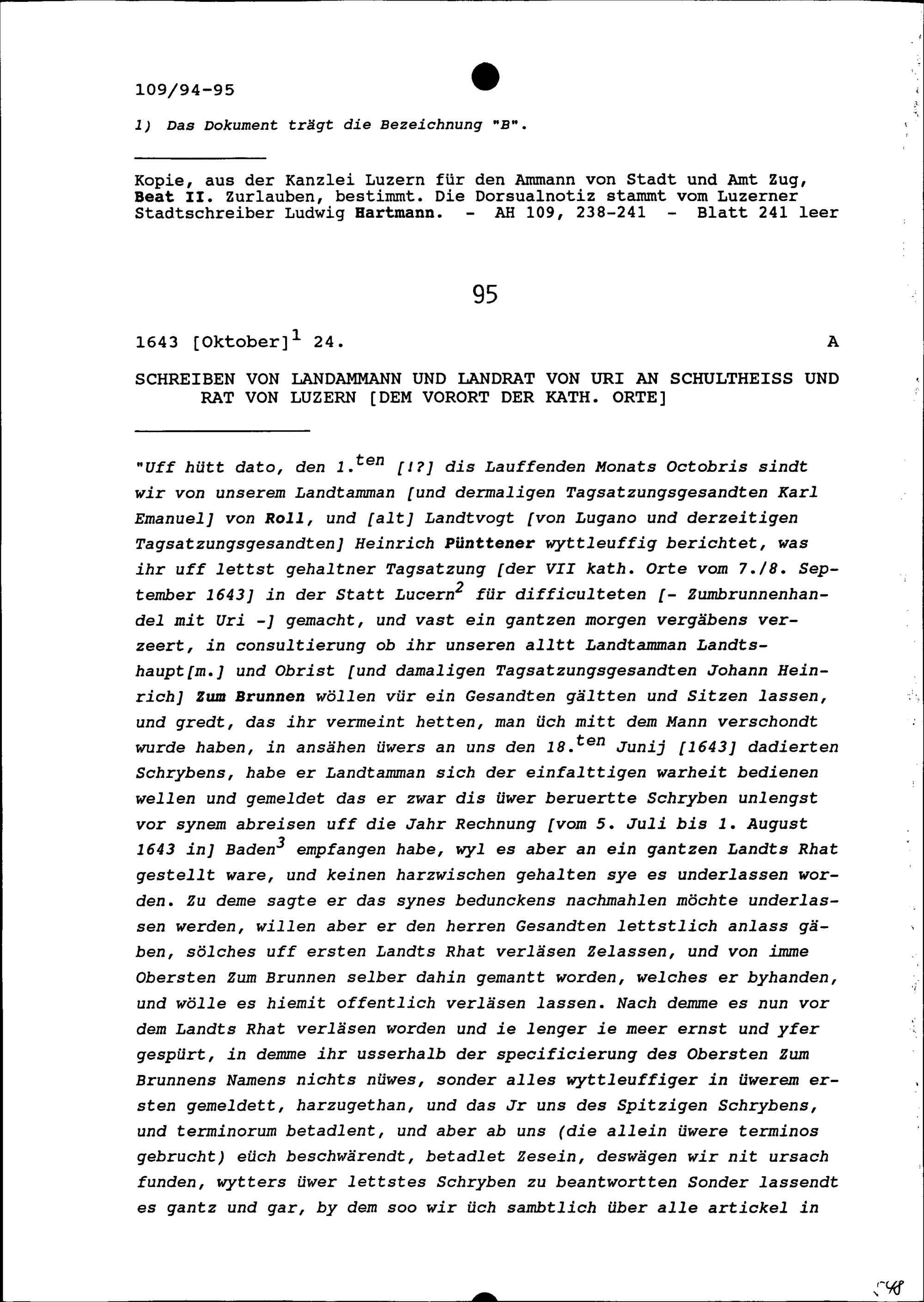 Schreiben des Landammanns und Landrats Uri an Schultheiss und Rat Luzern, Vorort der Katholischen Orte