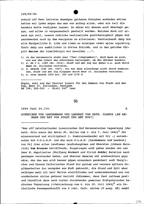 Schreiben des Landammanns und Landrats von Katholisch Glarus an Ammann und Rat von Stadt und Amt Zug