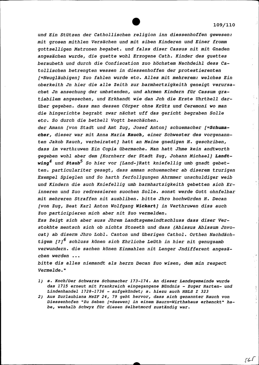 Schreiben von Josef Anton Reding, Altlandammann und Ratsherrn, an Beat Jakob Anton Zurlauben, Priester