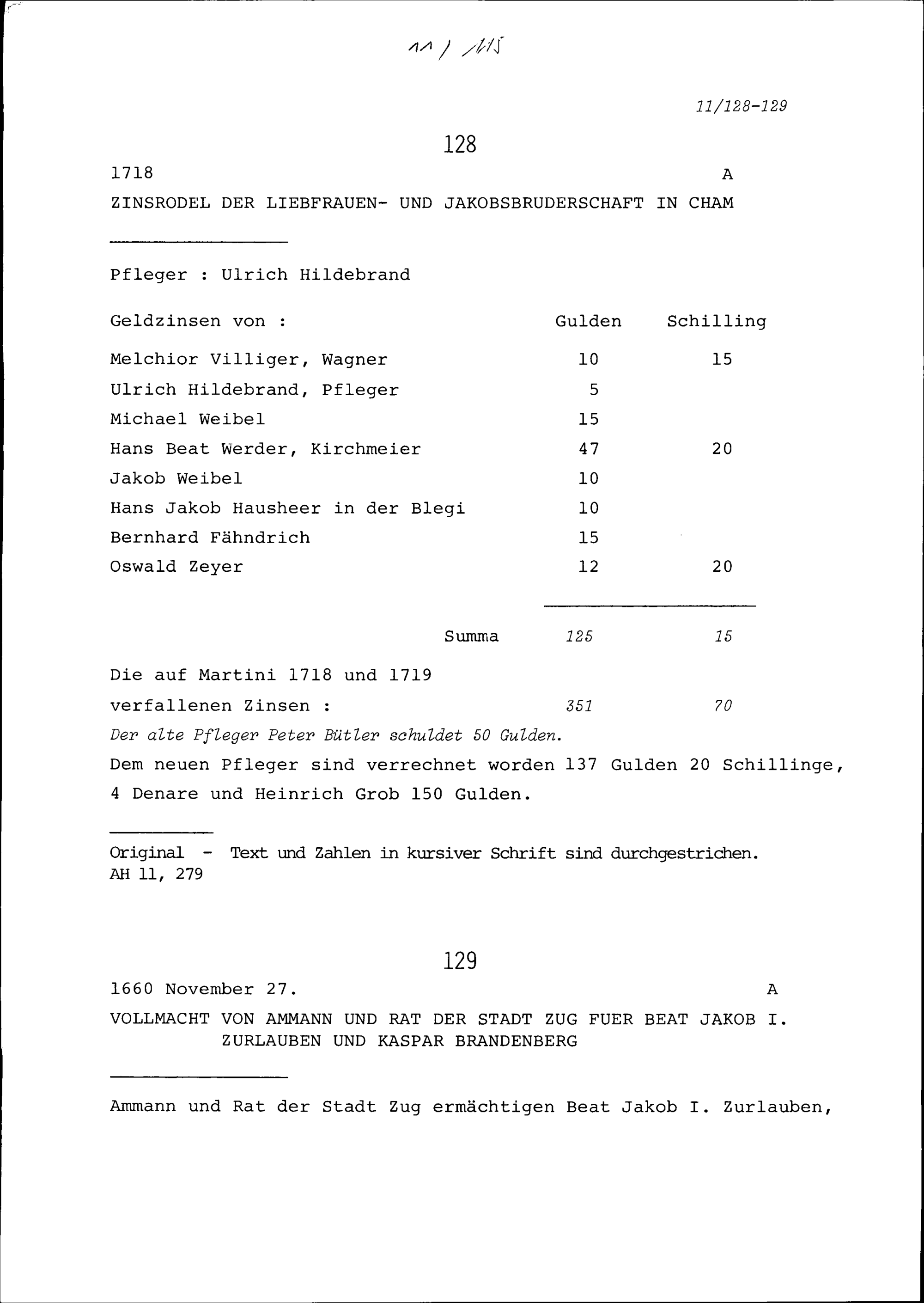 Vollmacht des Ammanns und Rats der Stadt Zug für Beat Jakob I. Zurlauben und Kaspar Brandenberg
