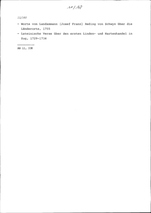 Notiz zur Schweiz, aufgezeichnet von Beat Fidel Zurlauben