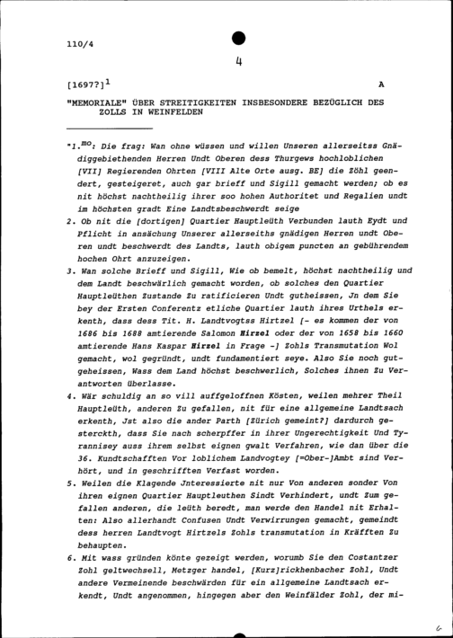 Bericht über verschiedene Thurgauer Angelegenheiten unter anderem wegen des Zolls in Weinfelden