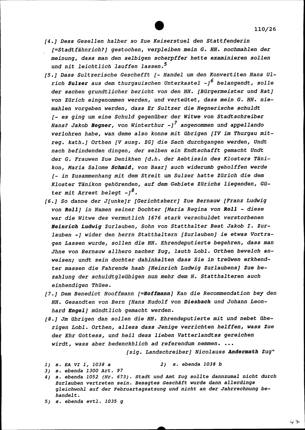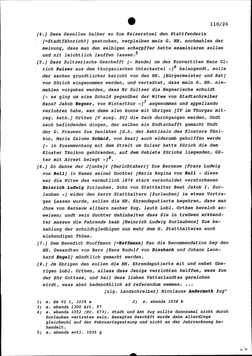 Instruktion von Stadt und Amt Zug auf die am 23. Februar 1677 beginnende Tagsatzung...