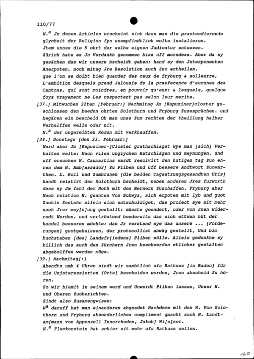 Notiz von Beat II. Zurlauben, Tagsatzungsgesandter von Stadt und Amt Zug, über die Tagsatzung der Dreizehn Orte vom 5. bis 25. Februar 1645 in Baden