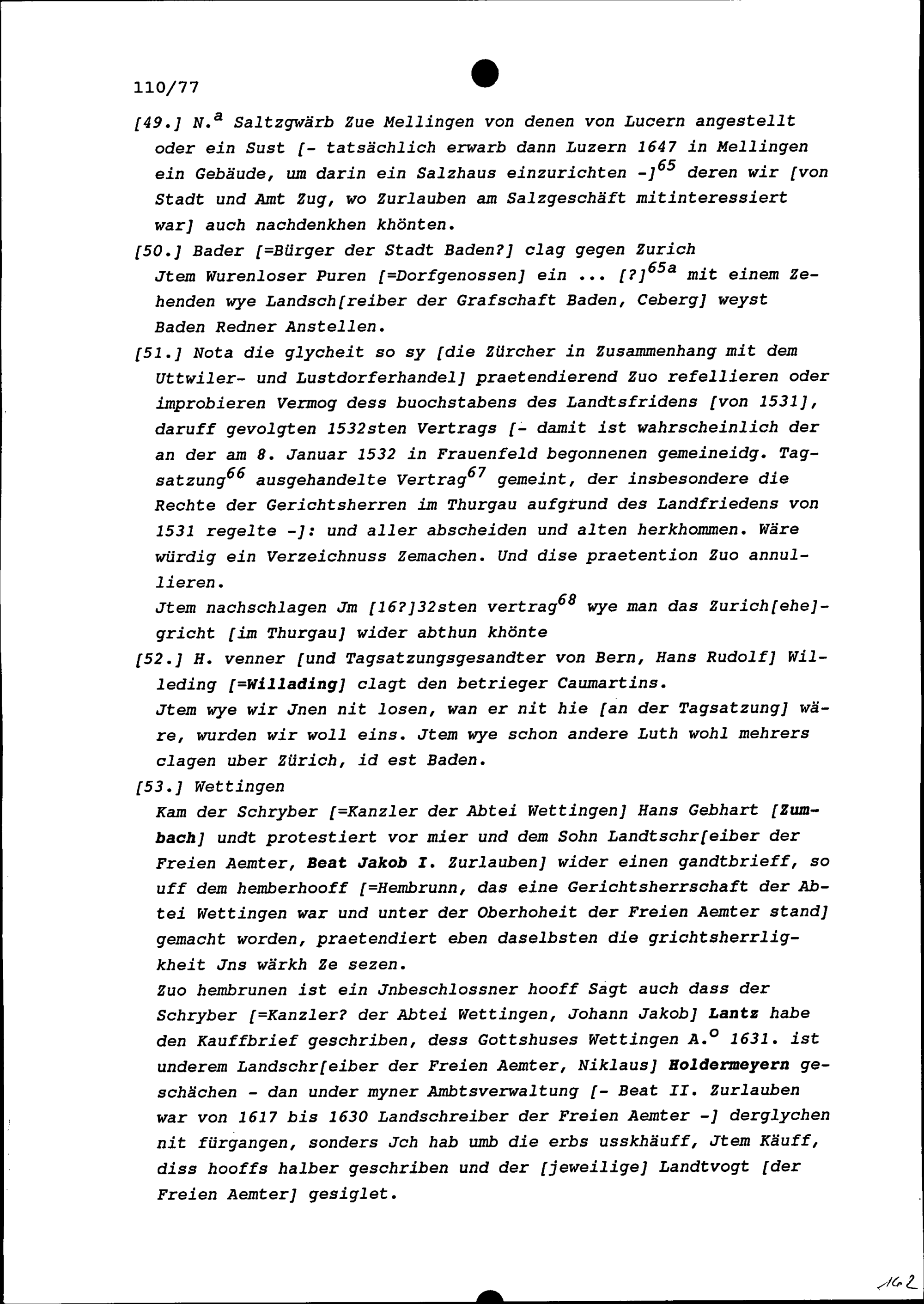 Notiz von Beat II. Zurlauben, Tagsatzungsgesandter von Stadt und Amt Zug, über die Tagsatzung der Dreizehn Orte vom 5. bis 25. Februar 1645 in Baden