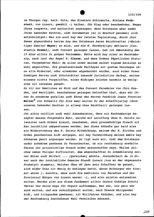 Schreiben von Eustach Wey, Kaplan und Provinzial der Oberdeutschen Franziskanerprovinz, an Beat II. Zurlauben, an Peter Trinkler und an Jakob Bossard, Tagsatzungsgesandte der Fünf Katholischen Orte vom 30. Oktober 1651 in Luzern und Kastvögte des Gotteshauses Paradies