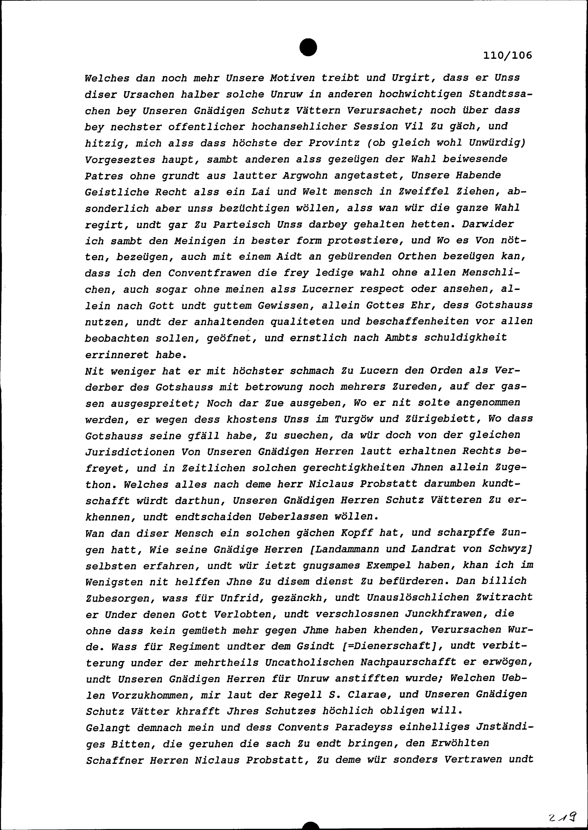 Schreiben von Eustach Wey, Kaplan und Provinzial der Oberdeutschen Franziskanerprovinz, an Beat II. Zurlauben, an Peter Trinkler und an Jakob Bossard, Tagsatzungsgesandte der Fünf Katholischen Orte vom 30. Oktober 1651 in Luzern und Kastvögte des Gotteshauses Paradies