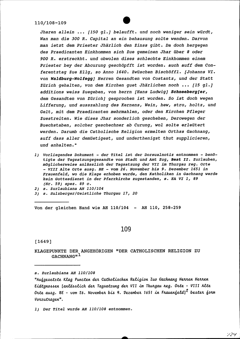 Klagen der Angehörigen der katholischen Religion zu Gachnang