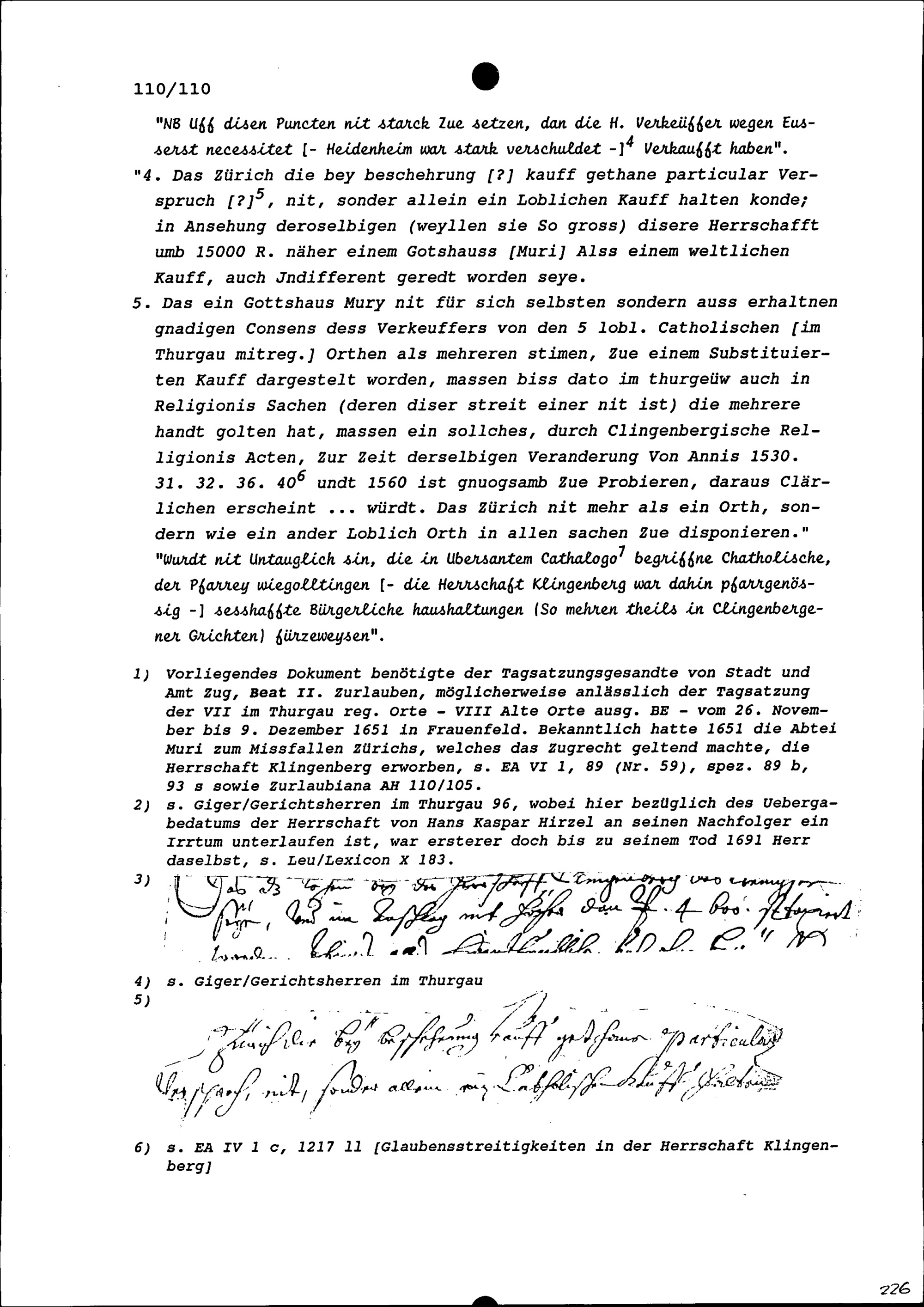 Argumente, weshalb von Zürich, die Herrschaft Klingenberg erhalten soll