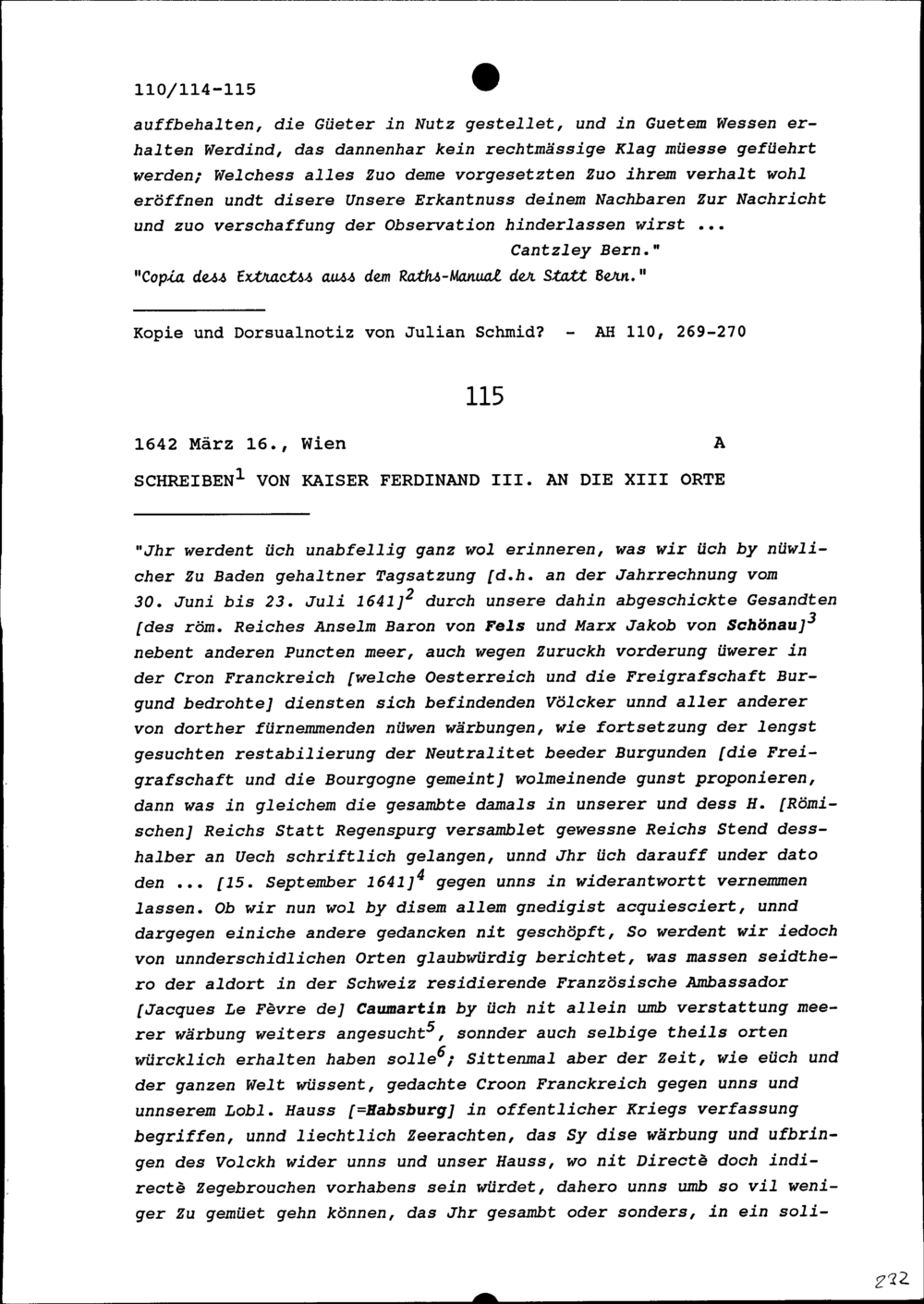 Schreiben von Ferdinand III., Kaiser, an die Dreizehn Orte