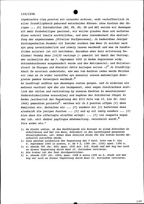 Notiz von Beat II. Zurlauben, Tagsatzungsgesandter