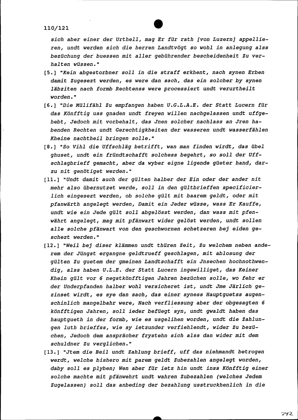 Vertragspunkte (Bauernkrieg), die Luzern durch Vermittlung der Sechs Katholischen Orte und die Zehn luzernischen Ämter angenommen haben