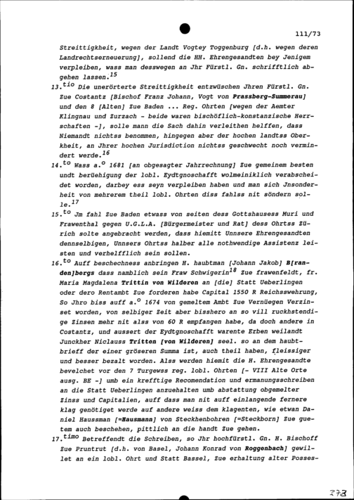 Instruktion von Stadt und Amt Zug auf die Tagsatzung vom 22. bis 24. November 1685 in Baden
