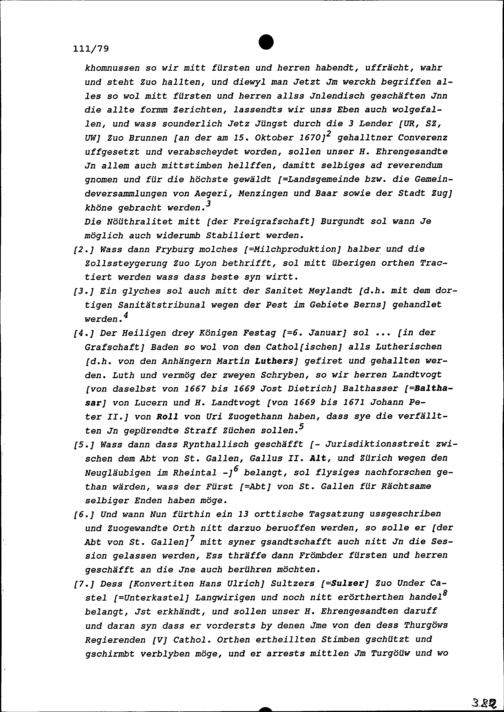 Instruktion von Stadt und Amt Zug auf die am 26. November beginnende Tagsatzung in Baden