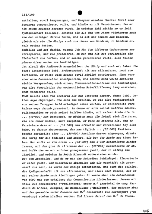 Antwort von Beat Anton Schnorf, Untervogt der Grafschaft Baden, auf ein Schreiben von Claude-Louis-Hector, Marquis de Villars, Marschall von Frankreich, das in Messkirch am 28. Mai 1703 den Eidgenössischen Orte übergeben wurde