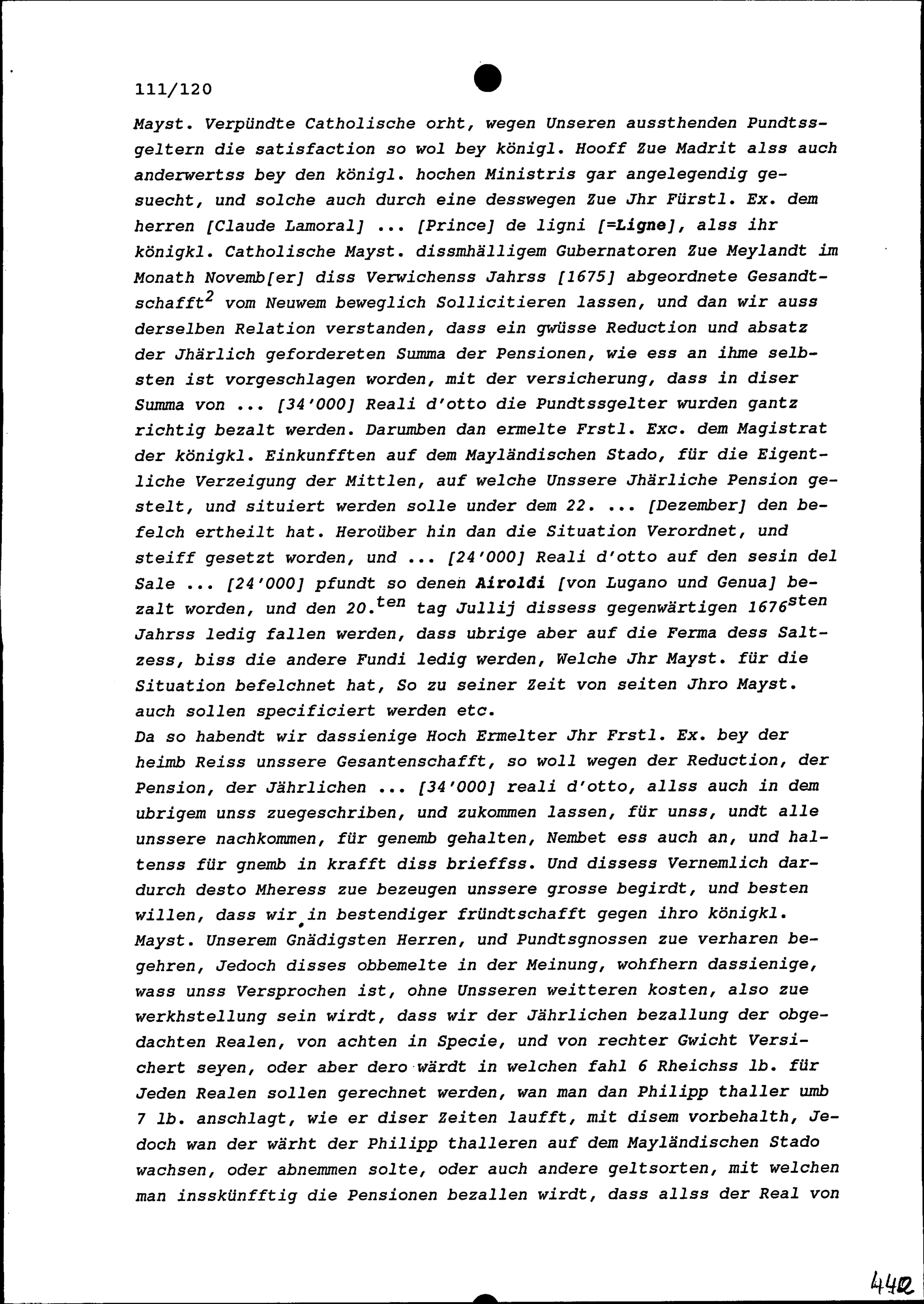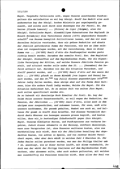 Reduktionsinstrument zwischen Karl II., König, und den Sieben Katholischen Orten wegen der Pensionen