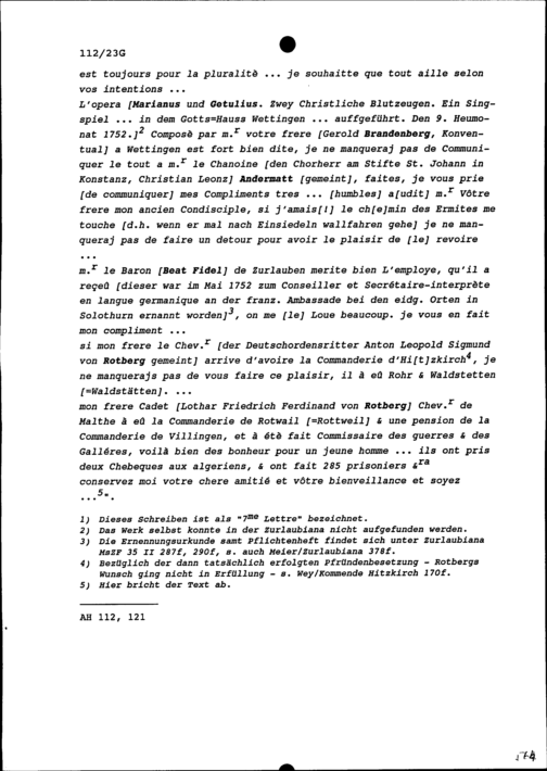 Schreiben von Johann Konrad Stanislaus von Rotberg, Domherr und Baron, an Beat Jakob Josef Felix Brandenberg, Hauptmann
