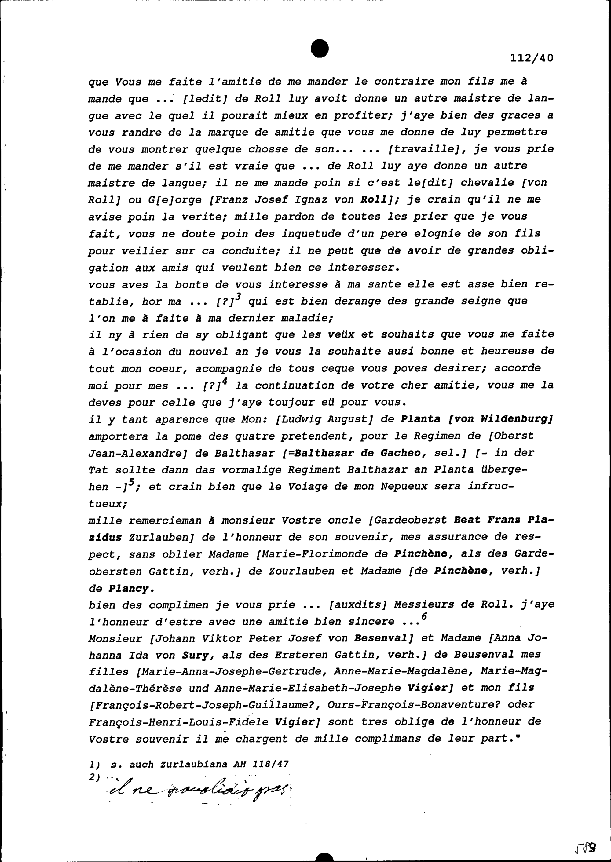 Schreiben von François-Joseph-Guillaume Vigier von Steinbrugg, Generalleutnant und Oberst, an Beat Fidel Zurlauben, Gardehauptmann und Brigadier
