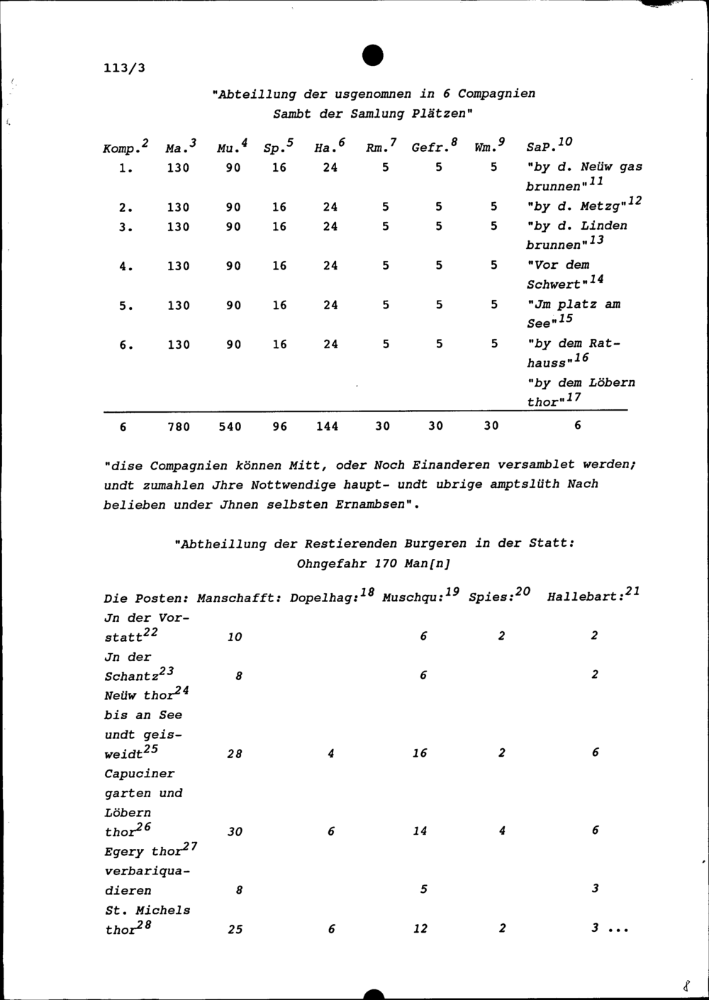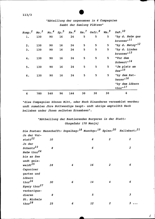 Ordnung und Abteilung einer Burgerschaft zu Zug, der Beisassen und Untertanen bei Krieg oder Notlagen
