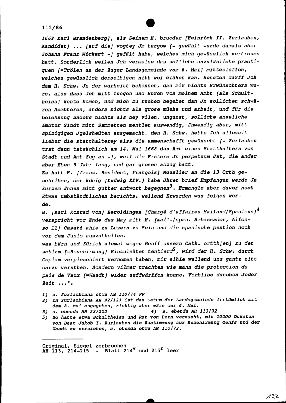 Schreiben von Alfons von Sonnenberg, Schultheiss, an Beat Jakob I. Zurlauben, Stadt- und Amtrat und Major, Zug