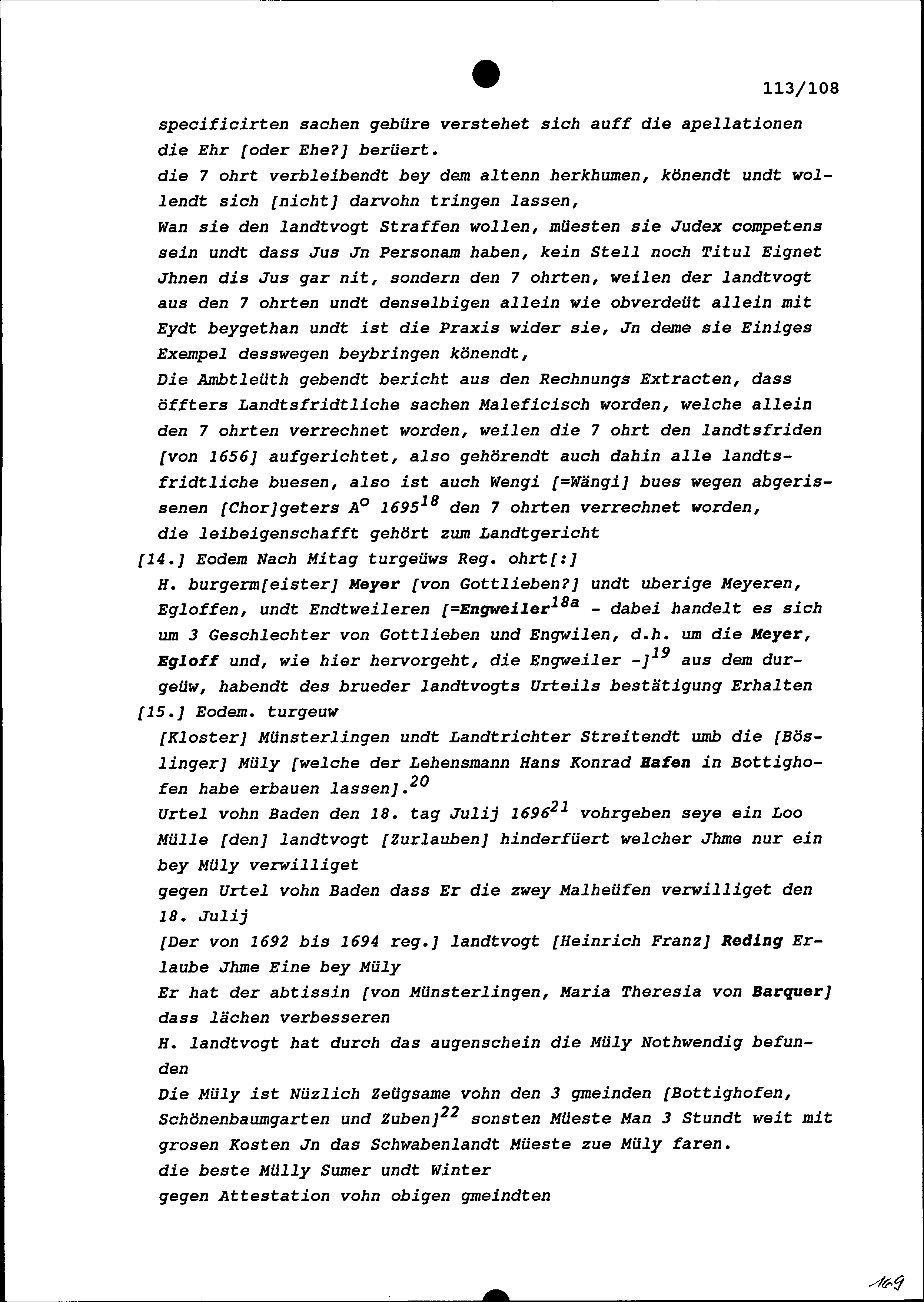 Notiz von Beat Kaspar Zurlauben, Tagsatzungsgesandter von Stadt und Amt Zug, über die am 30. Juni 1697 begonnene Jahrrechnung in Baden betreffend Gemeine Herrschaften