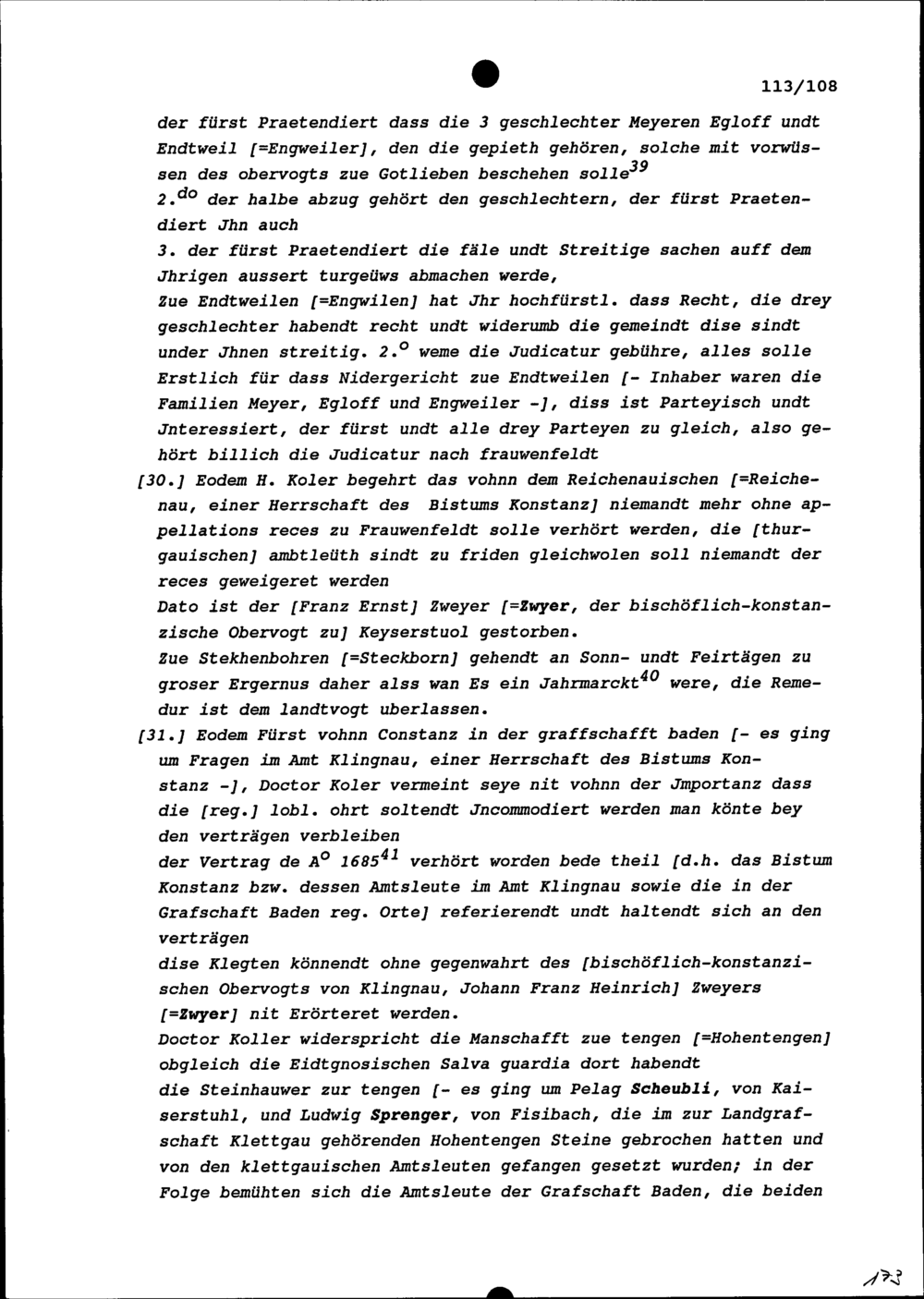 Notiz von Beat Kaspar Zurlauben, Tagsatzungsgesandter von Stadt und Amt Zug, über die am 30. Juni 1697 begonnene Jahrrechnung in Baden betreffend Gemeine Herrschaften