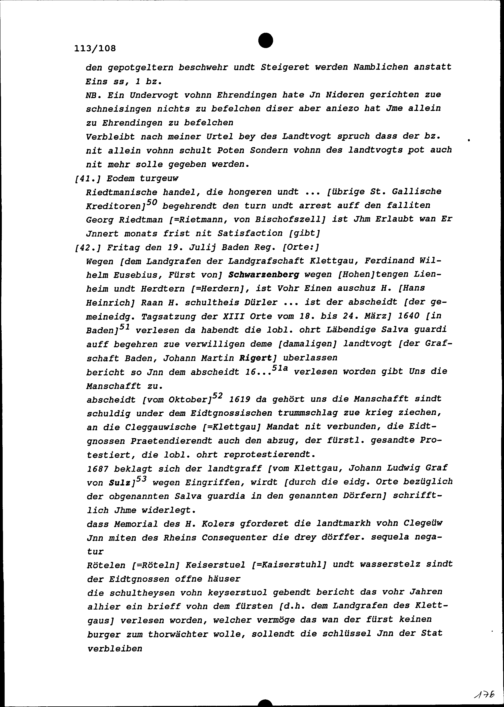 Notiz von Beat Kaspar Zurlauben, Tagsatzungsgesandter von Stadt und Amt Zug, über die am 30. Juni 1697 begonnene Jahrrechnung in Baden betreffend Gemeine Herrschaften