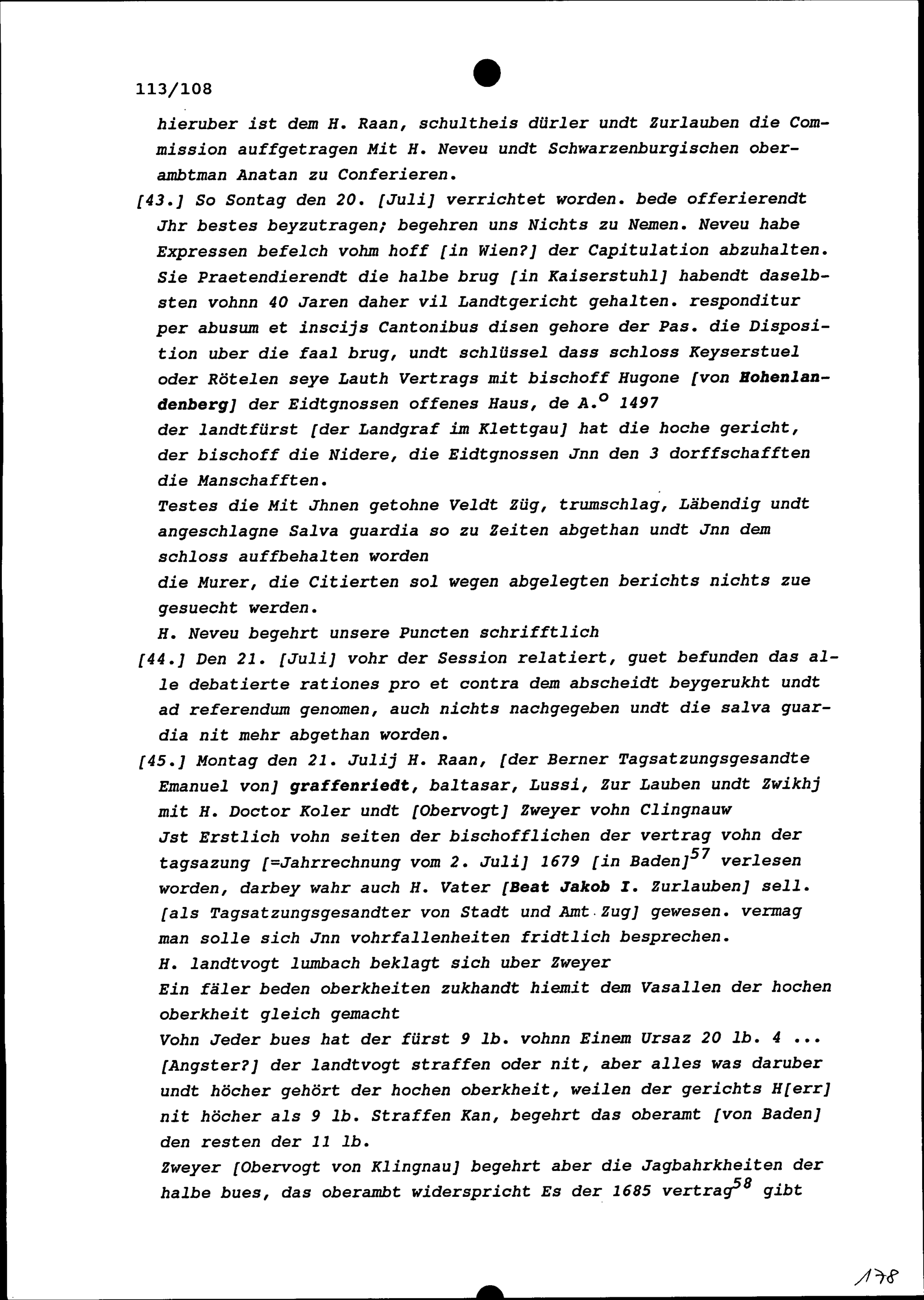 Notiz von Beat Kaspar Zurlauben, Tagsatzungsgesandter von Stadt und Amt Zug, über die am 30. Juni 1697 begonnene Jahrrechnung in Baden betreffend Gemeine Herrschaften