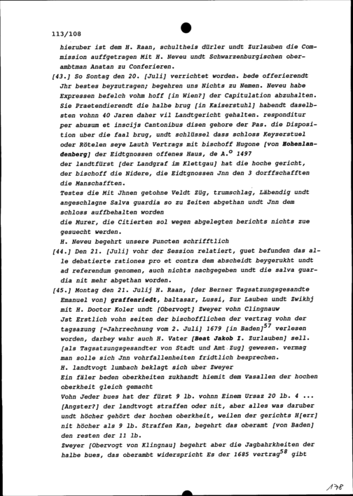 Notiz von Beat Kaspar Zurlauben, Tagsatzungsgesandter von Stadt und Amt Zug, über...