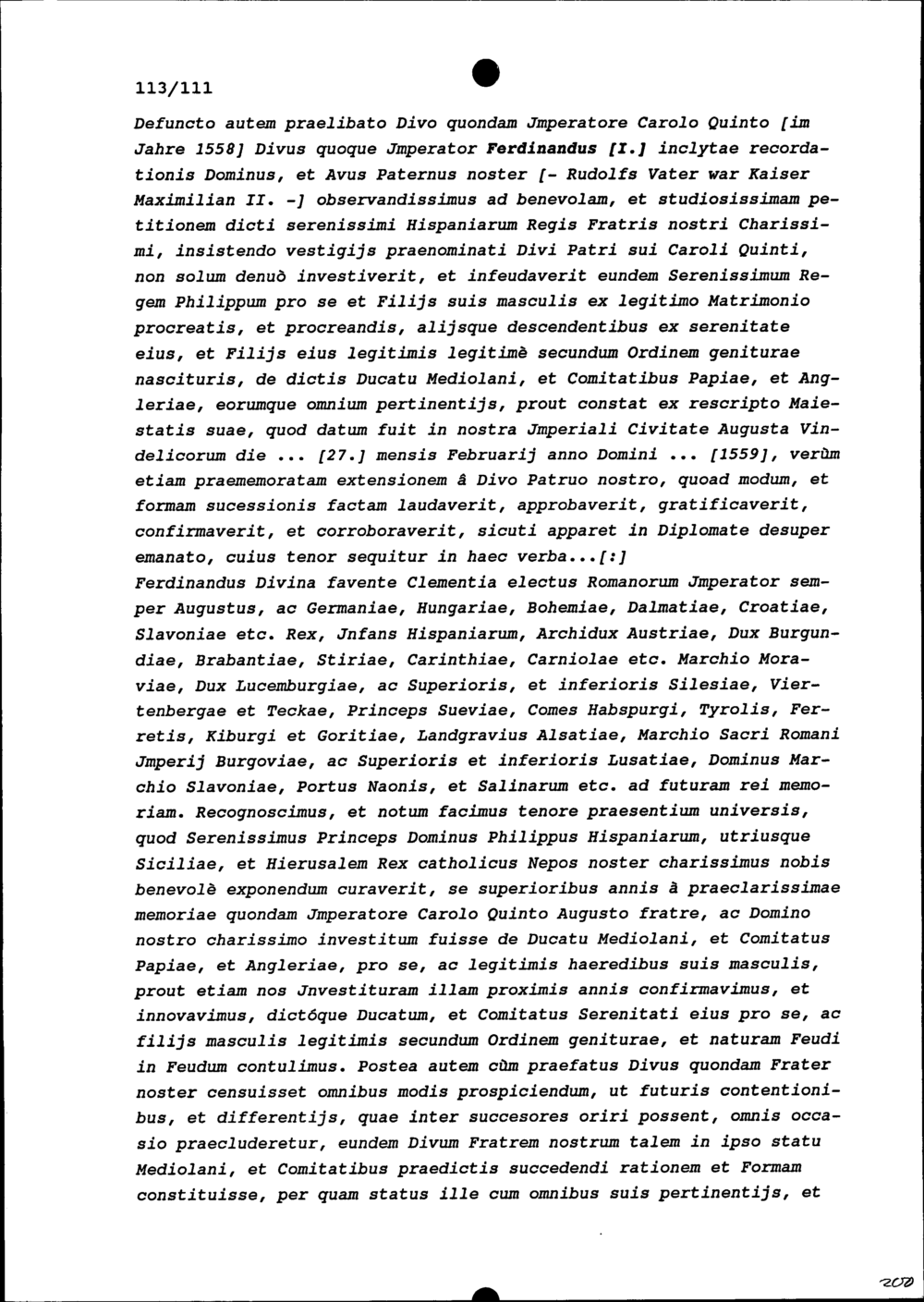 Ausführliche Abhandlung über die Erfolge (beispielsweise des kinderlos gebliebenen, Karl II., König von Spanien): Caesarea confirmation investiturarum, seu nova investitura feudalis Status Mediolani facta per imperatorem Rudolpheum II. in potentissimum regem Philippum II. et successores tam masculos, quam foeminas