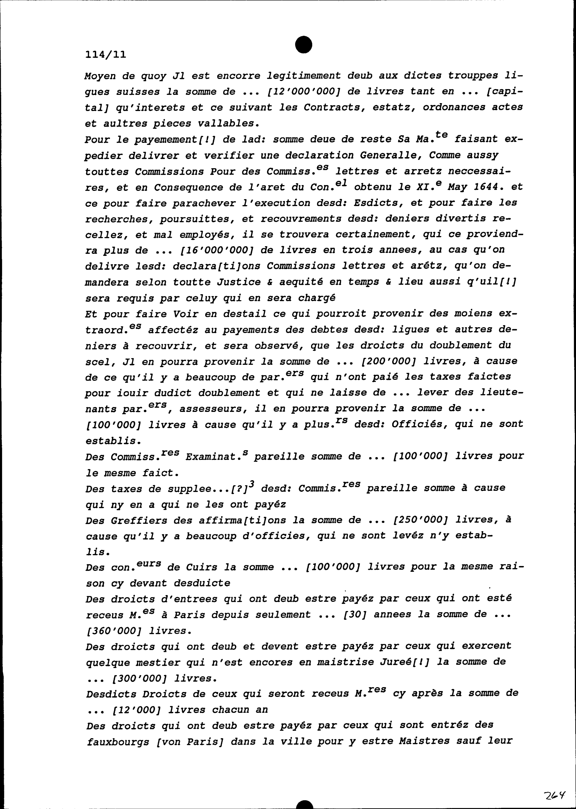 Notiz betreffend die Pensionen für die eidgenössischen Orte und deren Eintreibung
