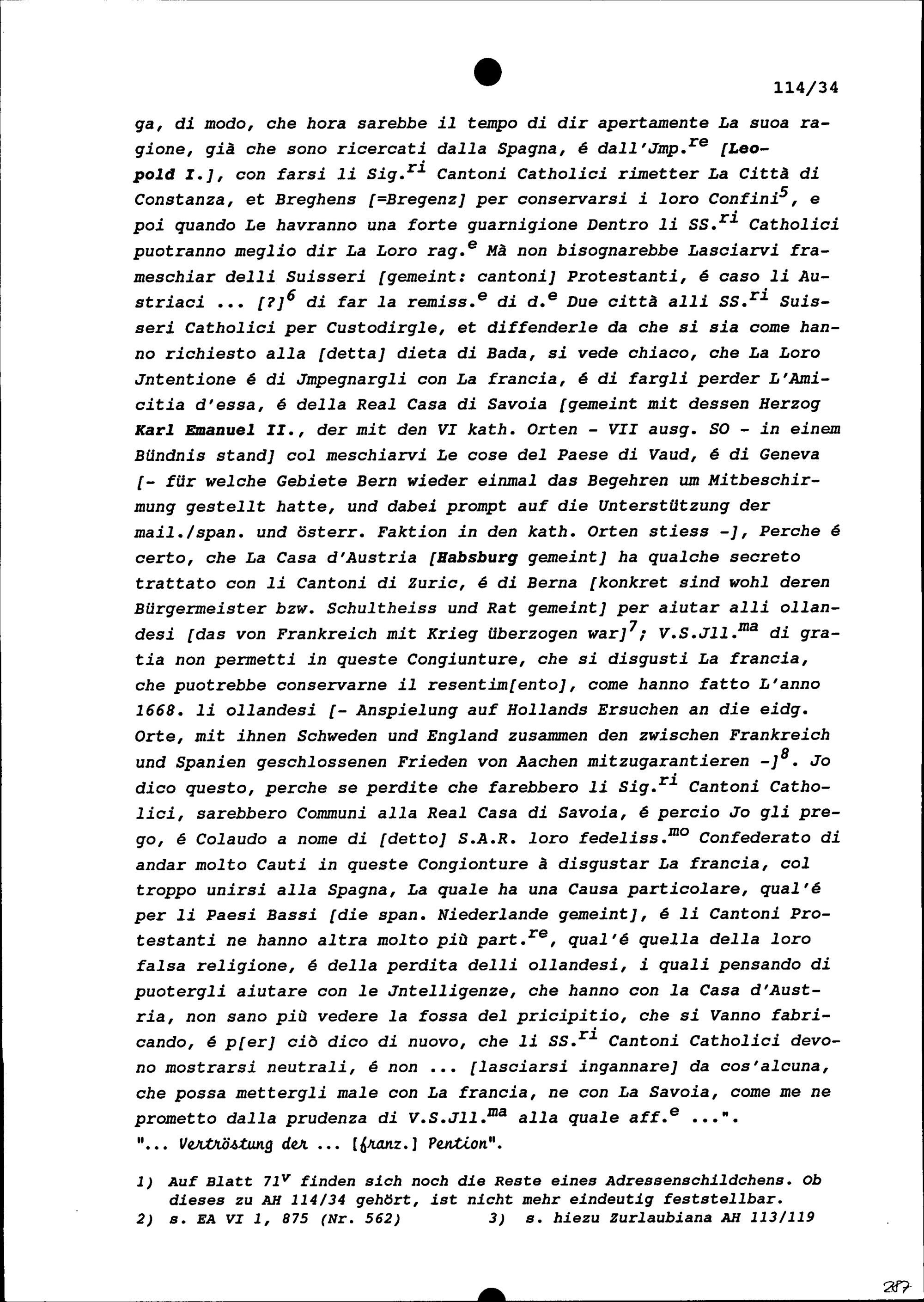 Schreiben von Giovanni Michele Leonardi, Ambassador von Savoyen, an Beat Jakob I....