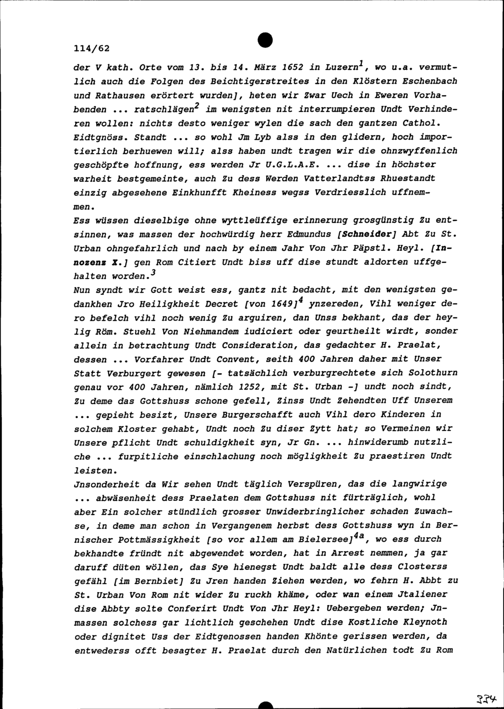 Schreiben des Schultheiss und Rats Solothurn an die Fünf Katholischen Orte