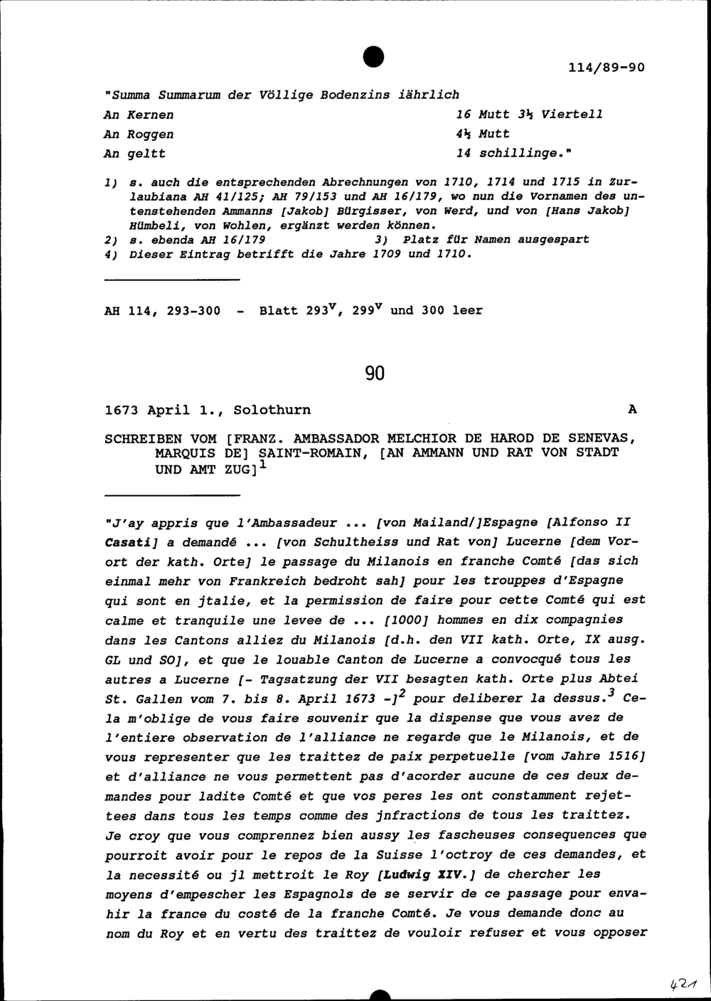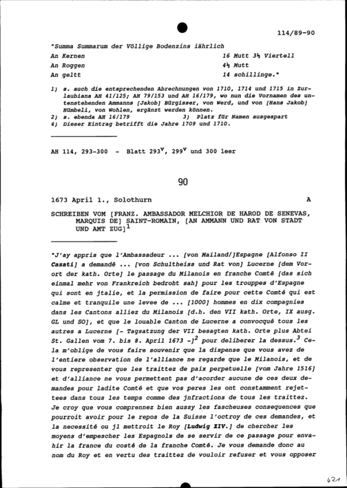 Schreiben von Melchior de Harod de Senevas, Marquis de Saint-Romain, Ambassador von Frankreich, an Ammann und Rat von Stadt und Amt Zug