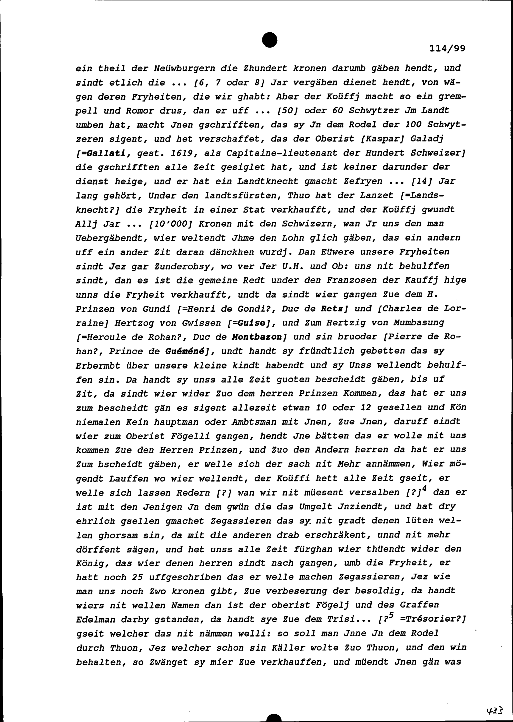 Schreiben der Hundertschweizer, in Frankreich, an Bürgermeister und Rat Zürich, Zürich
