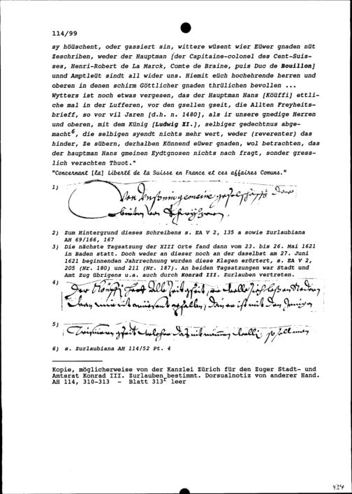 Schreiben der Hundertschweizer, in Frankreich, an Bürgermeister und Rat Zürich, Zürich