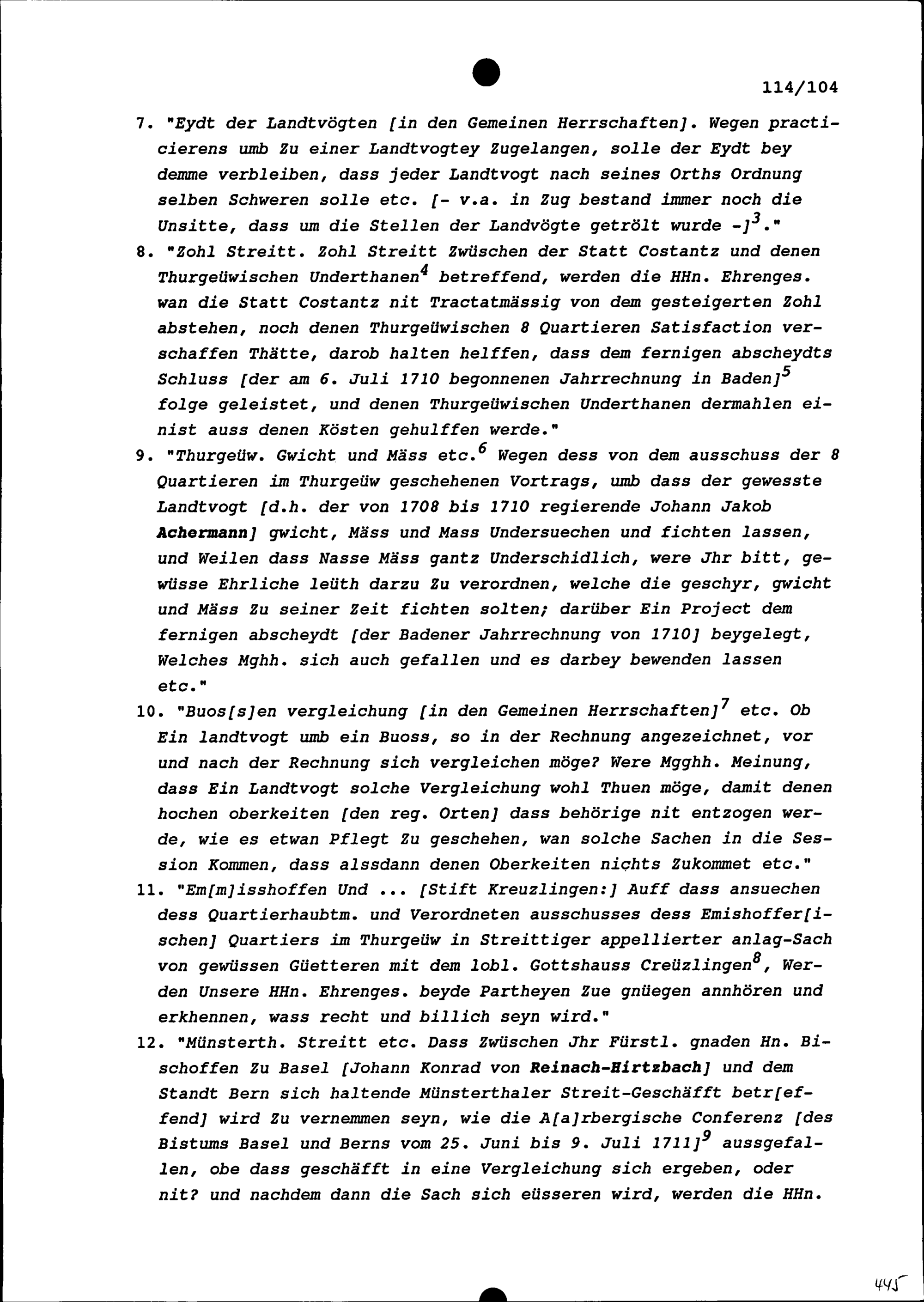 Instruktion von Stadt und Amt Zug auf die am 5. Juli 1711 in Baden beginnende Jahrrechnung