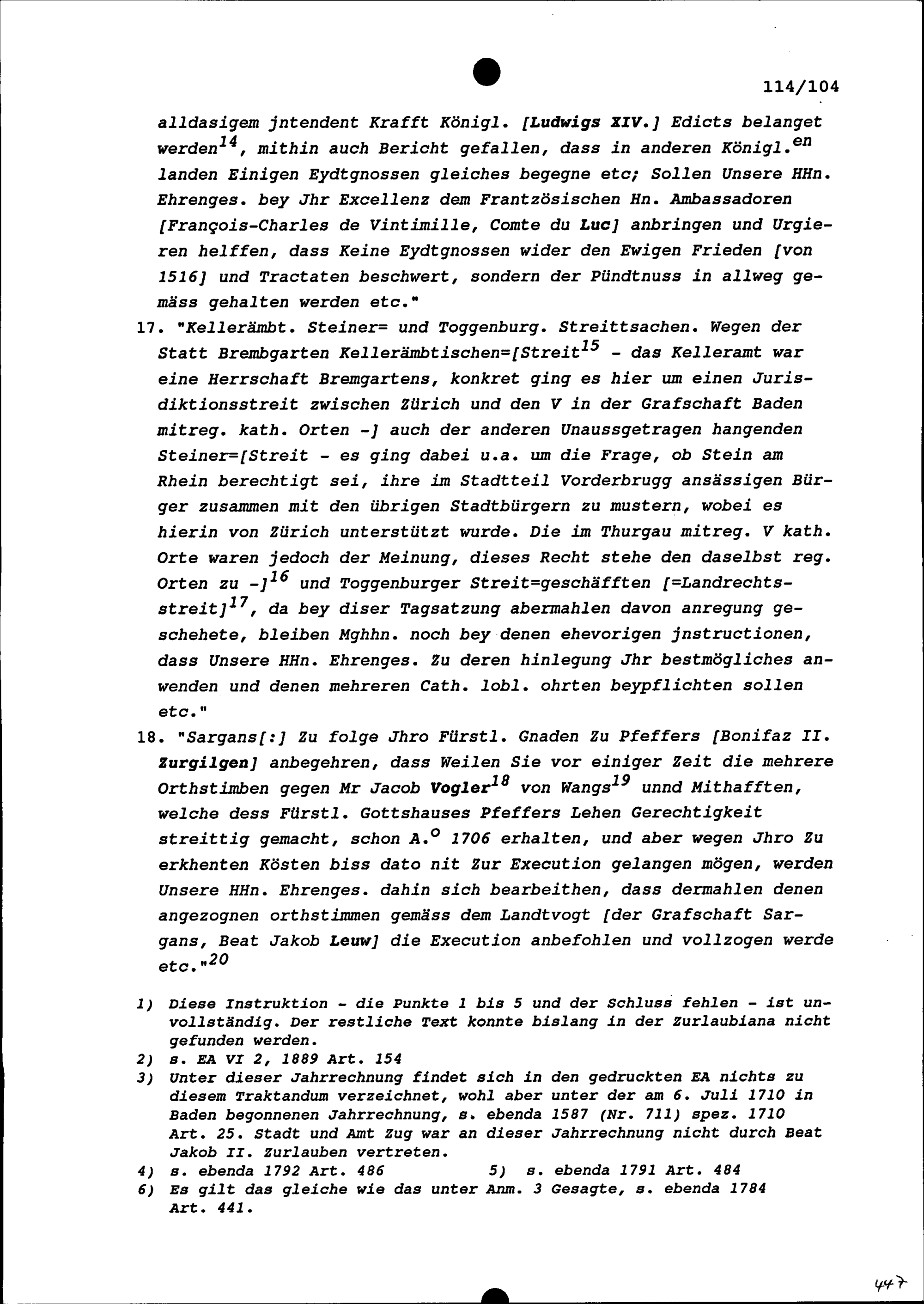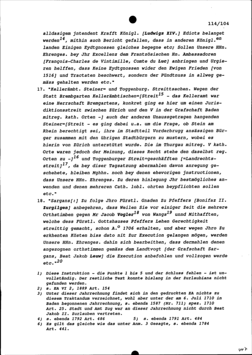 Instruktion von Stadt und Amt Zug auf die am 5. Juli 1711 in Baden beginnende Ja...