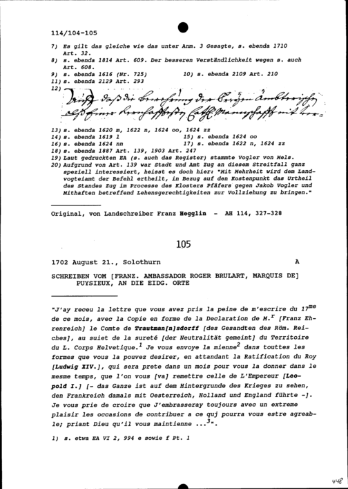 Schreiben von Roger Brûlart, Marquis de Puysieux, Ambassador von Frankreich, an die Eidgenössischen Orte
