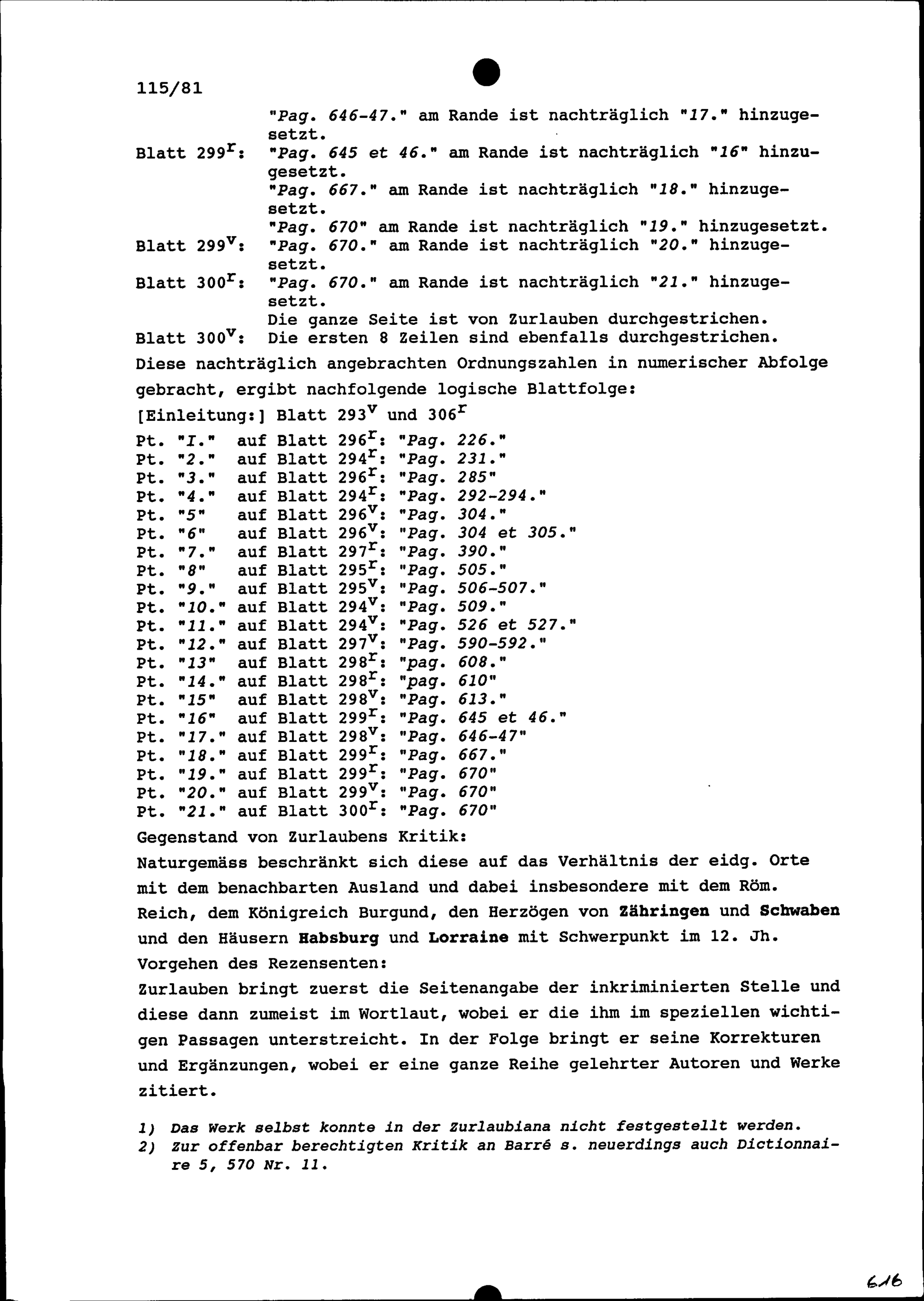 Kritische Rezension in Briefform des gedruckten Werkes von Joseph Barre: Histoire générale d'Allemagne. 3. Les Régnes depuis l'an 840. jusqu'en 1039. Paris, 1748, verfasst von Beat Fidel Zurlauben